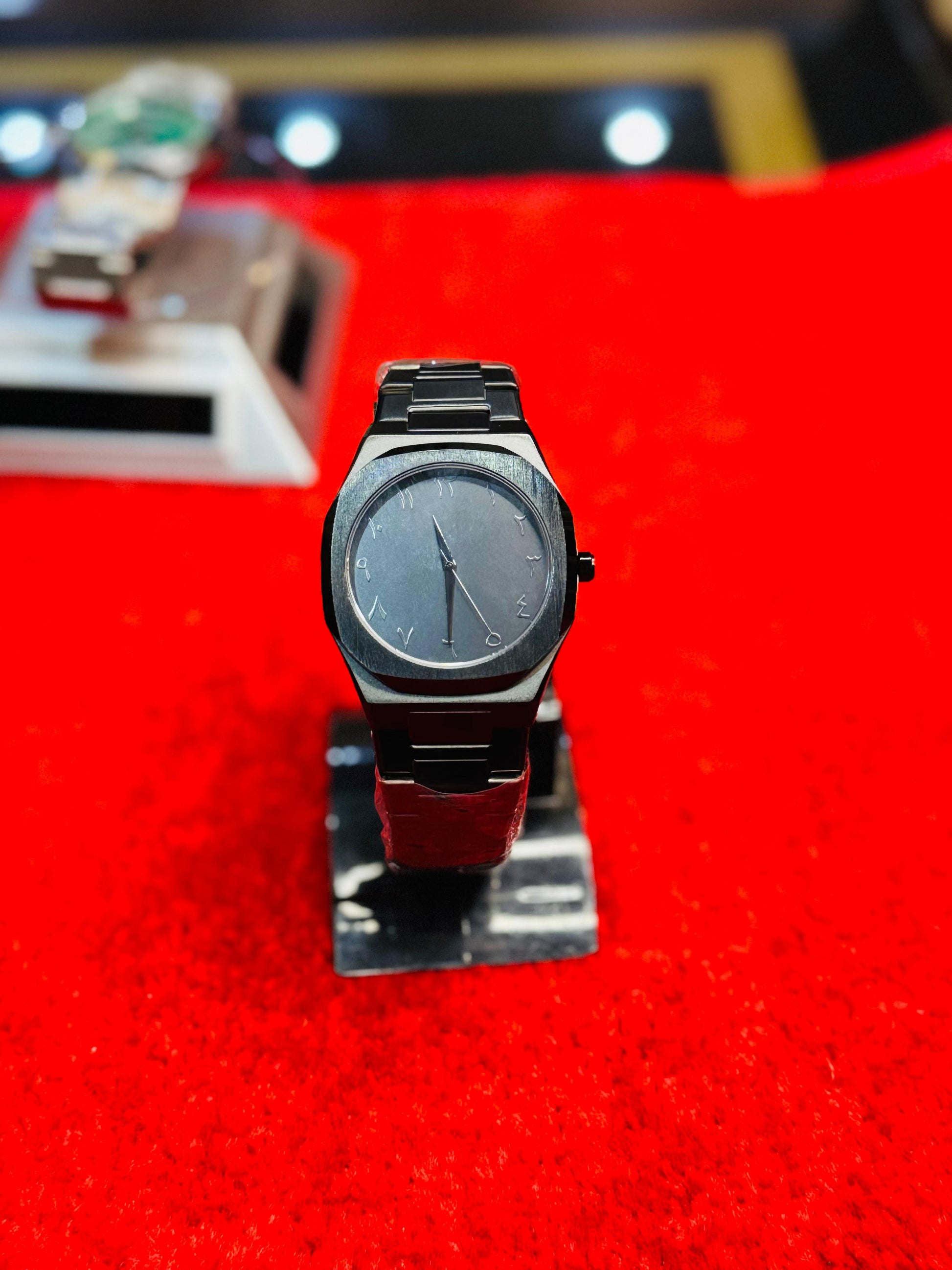 The Black Aura Arabic Dial Watch combines modern elegance with an authentic cultural touch. Its bold black design paired with striking Arabic numerals on the dial creates a unique timepiece that reflects sophistication and individuality